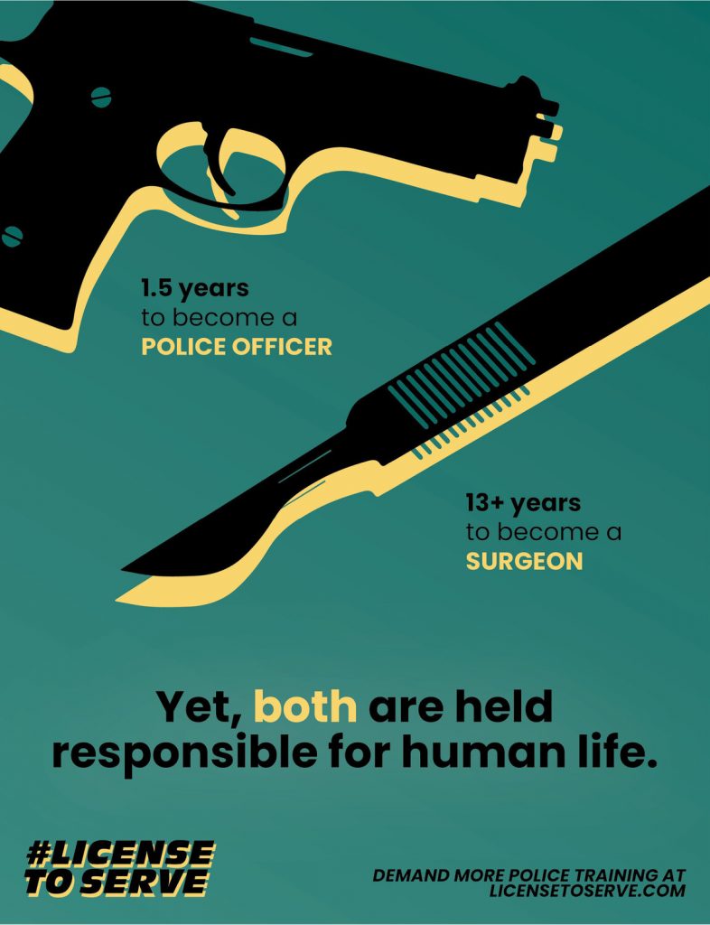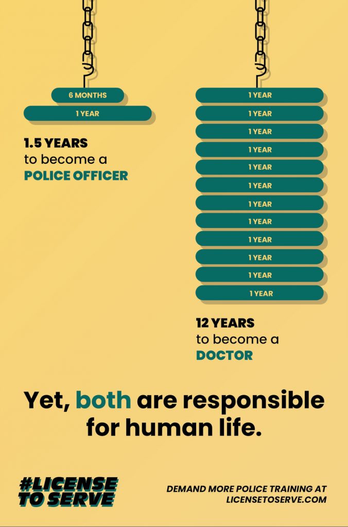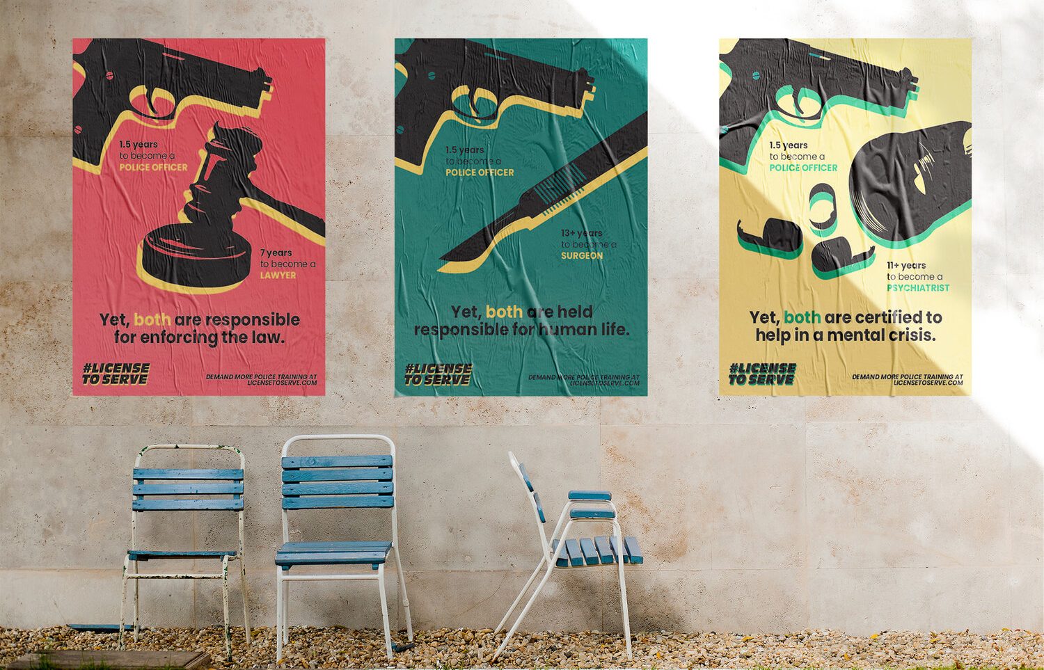 For this project, I was asked to choose a social cause that I personally cared about and design several campaigns around it. The topic I chose to represent was police reform, and I decided to place my focus on the training required to become a police officer in comparison to the training it takes to become a doctor, lawyer, surgeon, psychiatrist, etc.